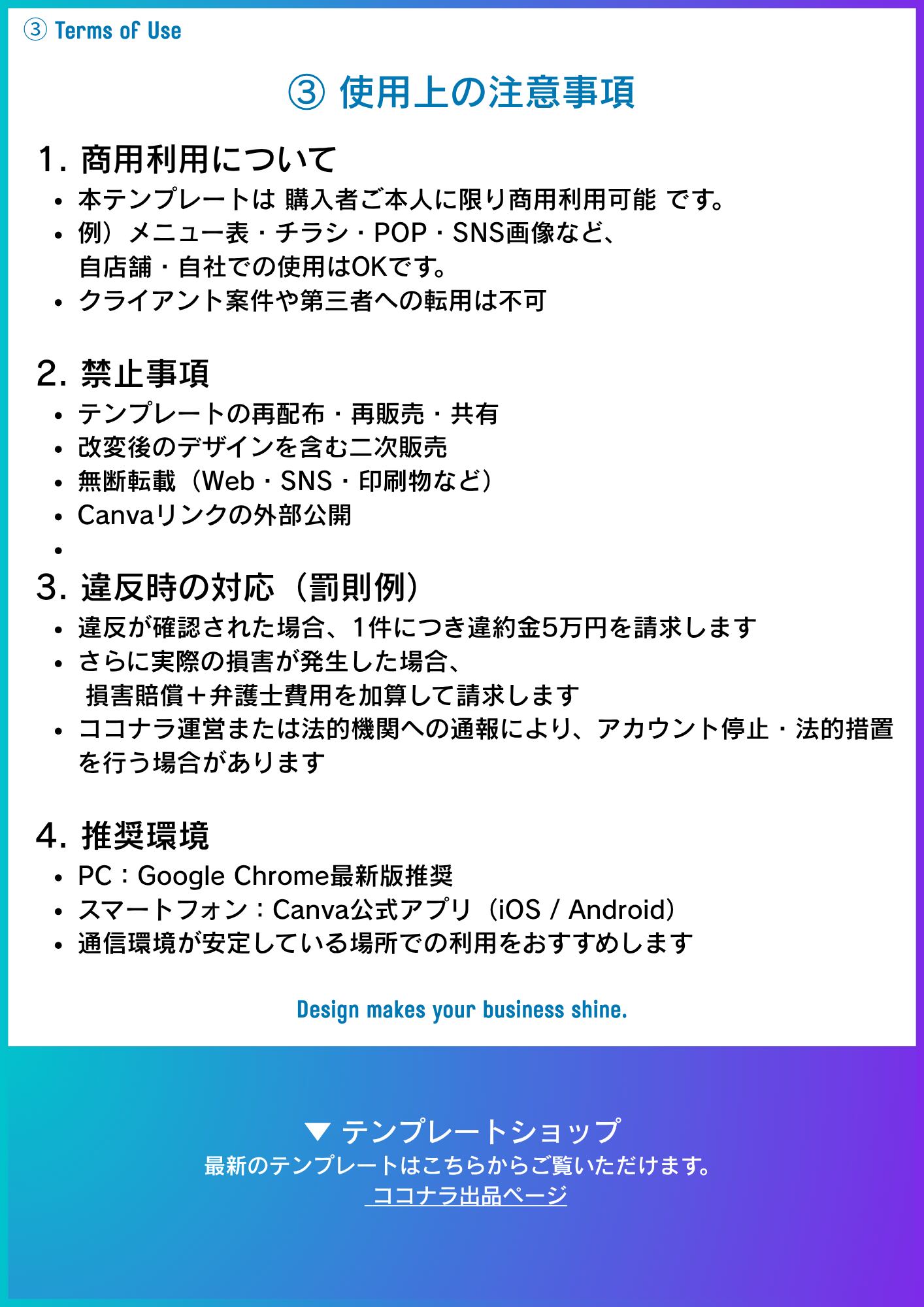 商用利用は購入者ご本人の店舗・ビジネスに限ります。
