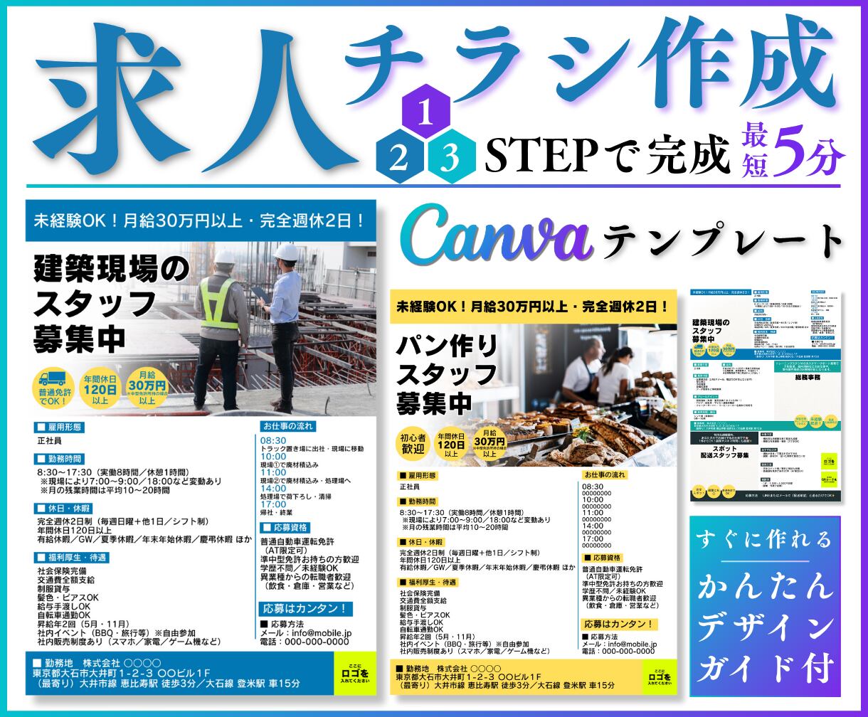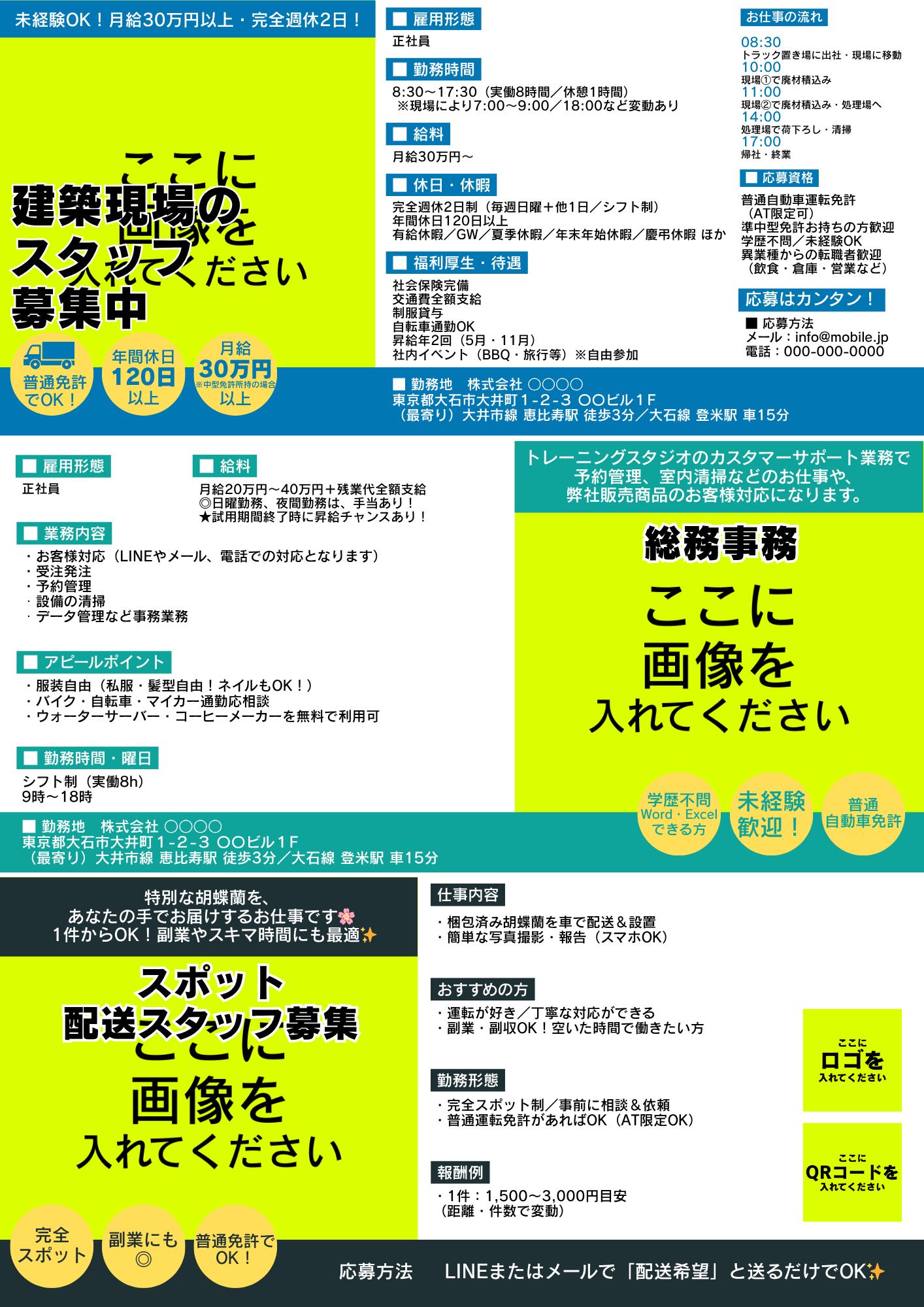 スタッフ募集や求人案内を“すぐに作りたい!”という方に向けた