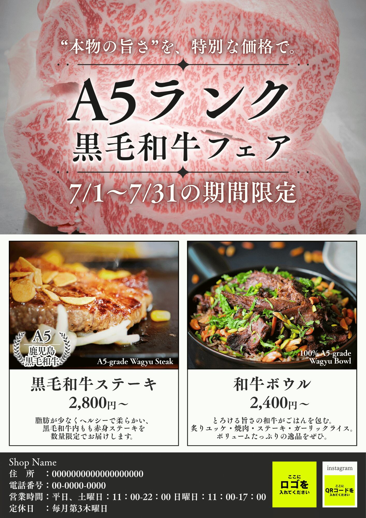 和牛フェア・季節フェア・周年祭など、
