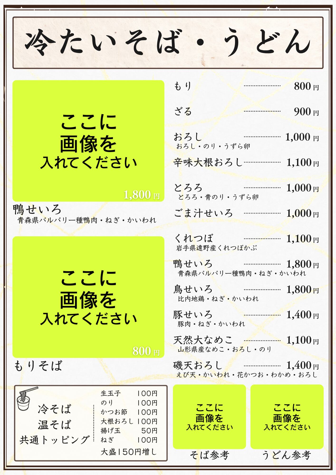 A4印刷対応(テーブルメニュー・店頭掲示に最適)