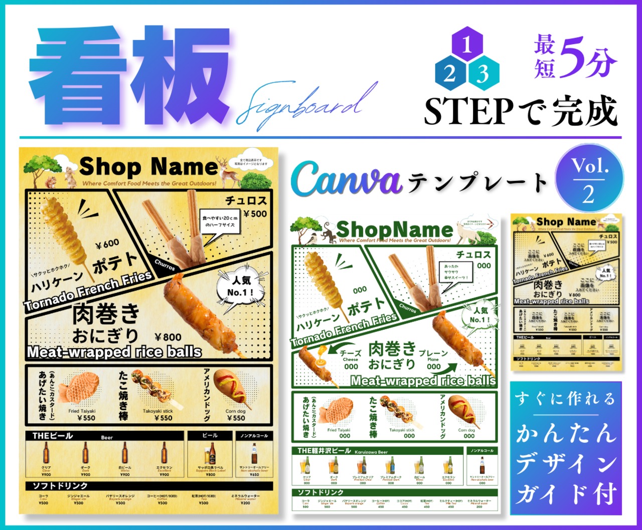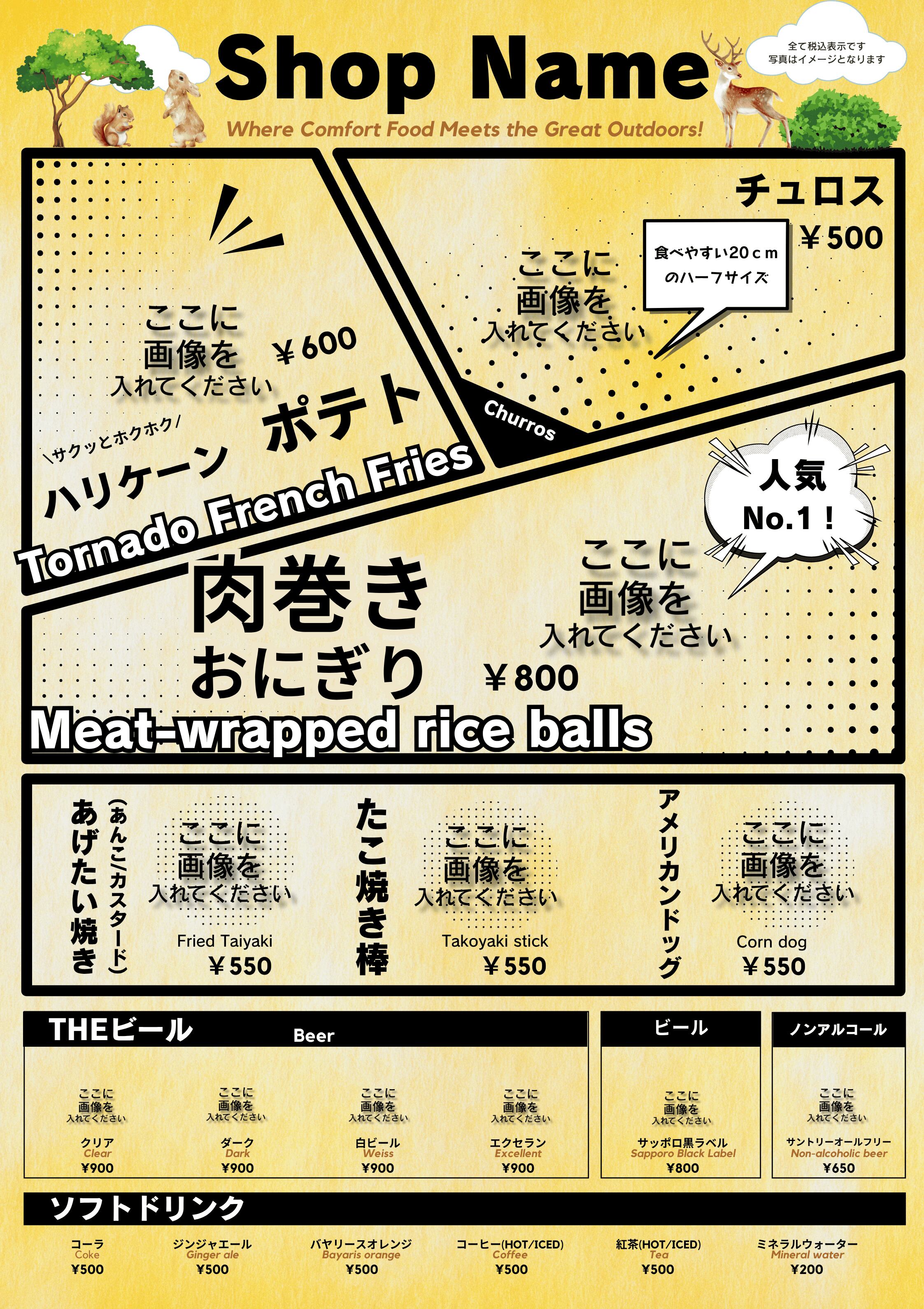 写真・文字・店名・価格を自由に差し替え