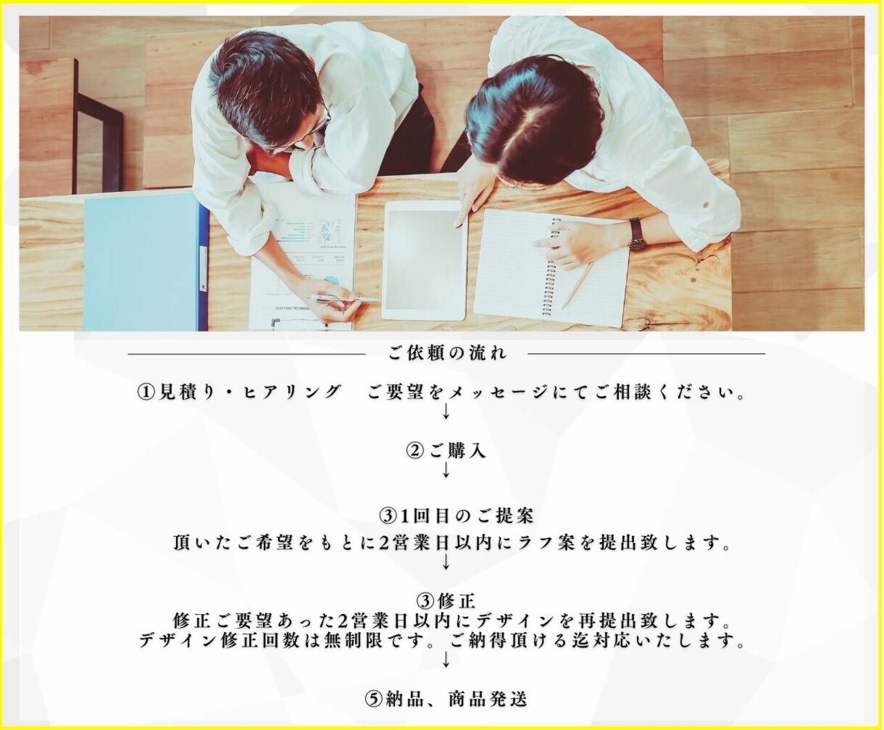 頂いたご希望をもとに3日以内にラフ案を提出致します。