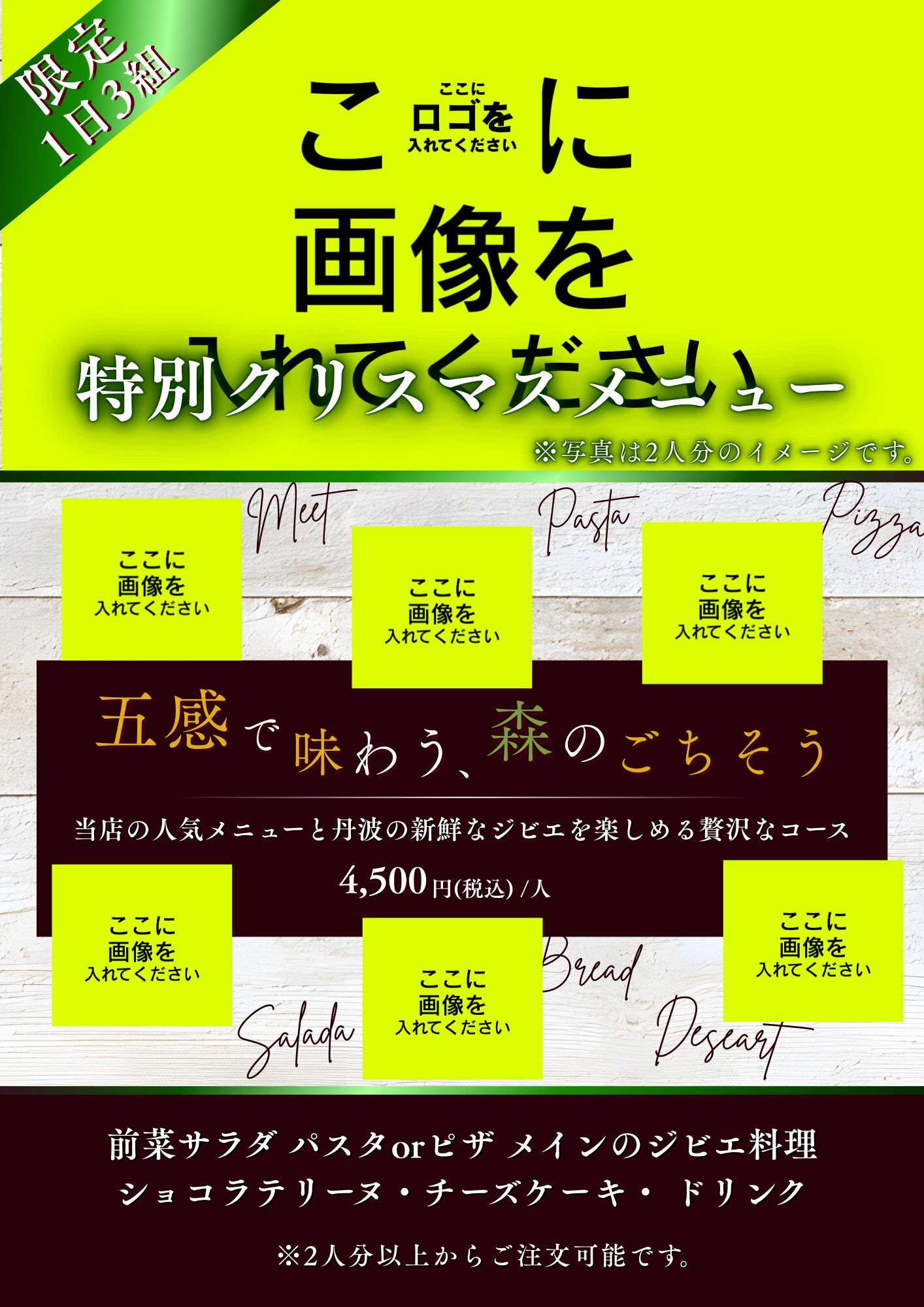 写真・価格・メニュー名を自由に差し替えOK