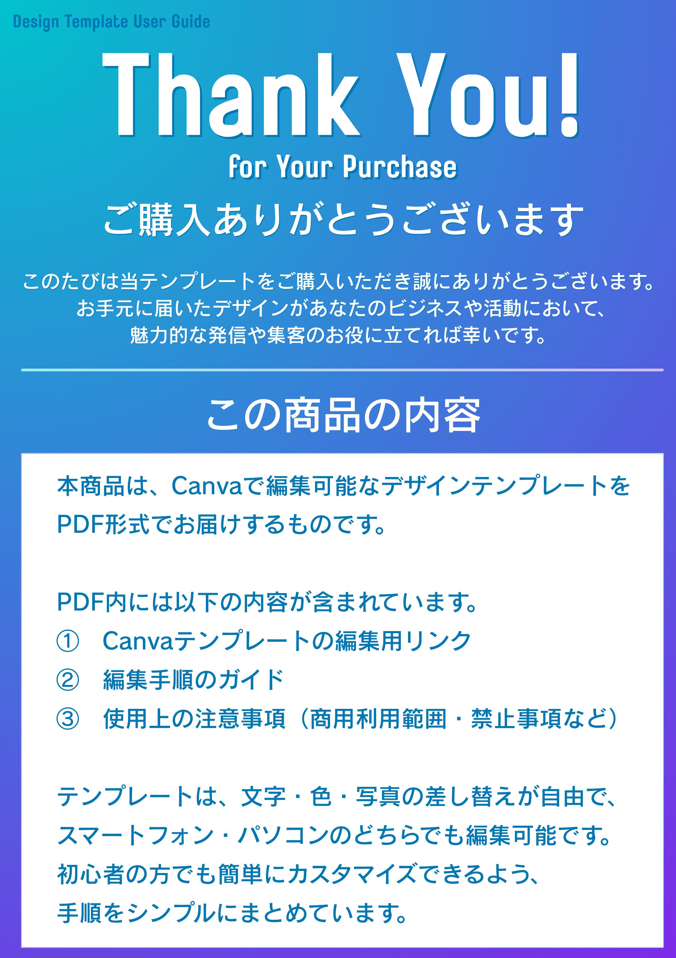 ※PDF冒頭ページに「テンプレートリンク・ガイド・注意事項」の構成が明記されています。